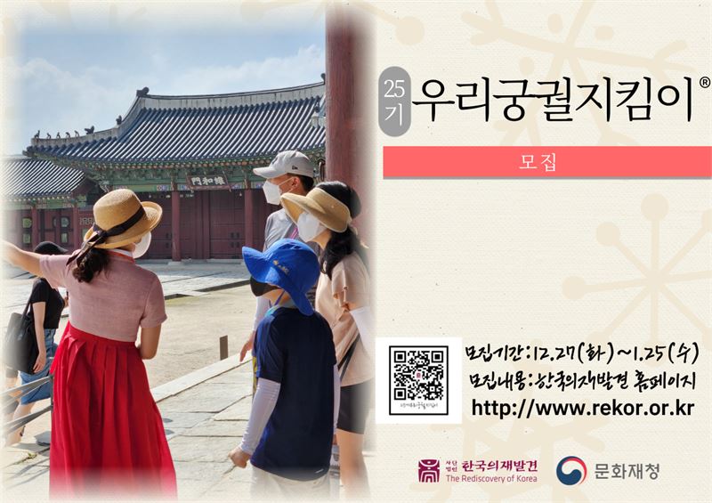 사)한국의재발견에서 2022년 12월 27일(화)~2023년 1월 25일(수)까지 제25기 우리궁궐지킴이를 모집한다.