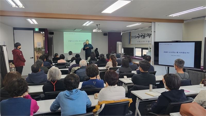 "궁궐의 소나무는 왜 사라졌는가?" 라는 주제의 강의는 역사문화에 관심 많은 50여명 참관자들의 뜨거운 관심과 배움의 열기가 가득한 가운데 진행되었다.