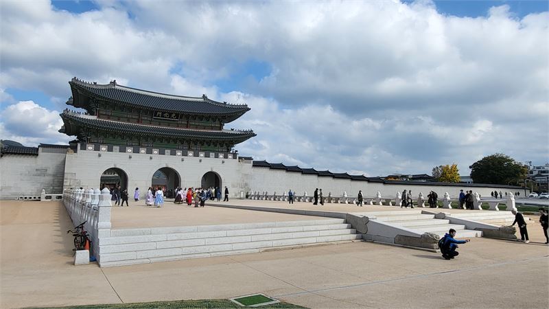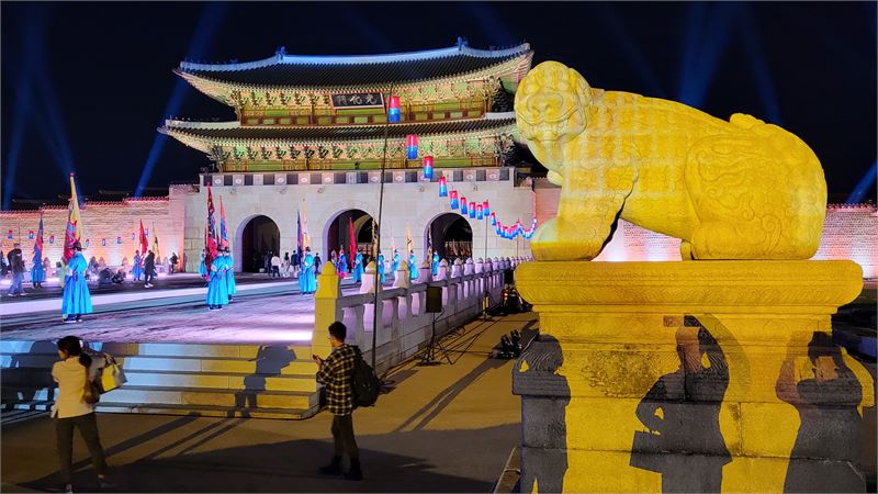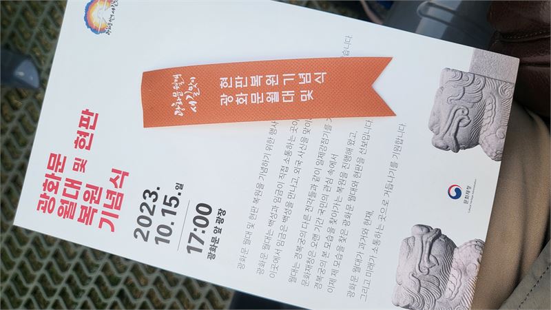 2023. 10. 15.(일) 17:00 광화문 앞 광장에서는 광화문 월대 및 현판 복원 기념식이 있었다. 광화문은 조선의 법궁 경복궁 남문으로서 여러차례 수난과 복원과정에서 문제가 있었다. 새로이 복원이 된 후에는 현판에 대한 논란이 있었고, 월대를 복원하지 못한 미완성 상태였다. 이번에 문화재청과 서울특별시가 오랜동안 여러 노력을 통해 고종 임금 당시의 광화문 월대를 거의 완전하게 복원을 하고, 복원 기념식을 진행하게 되었다. 현판은 흰바탕 검정색 글씨에서 검정바탕 황금색 글씨로 바꾸고, 월대 구성물인 소맷돌 서수와 동자주 등을 실제 사용되었던 것을 찾아와 활용할 수 있어서 더욱 뜻 깊다 하겠다. 광화문 월대의 역할이 소통의 공간이었던 것처럼 월대의 복원을 계기로 우리 모두 소통하고, 화합하면 좋겠다는 생각을 했다.