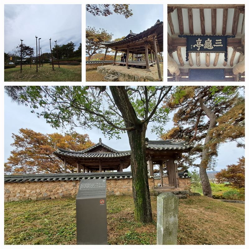 효심의 정자 삼구정 / 현판 / 누군가를 기다리는 듯 서 있는 소나무들과 삼구정(사진촬영 고경임)