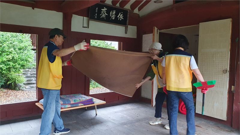 국가유산을 사랑하는 자원봉사자 16명은 2024년 6월30일 10시~13시 밀양시 부북면 소재 의첨재에서 국가유산 활용 플로깅 사업을 시행하였다.