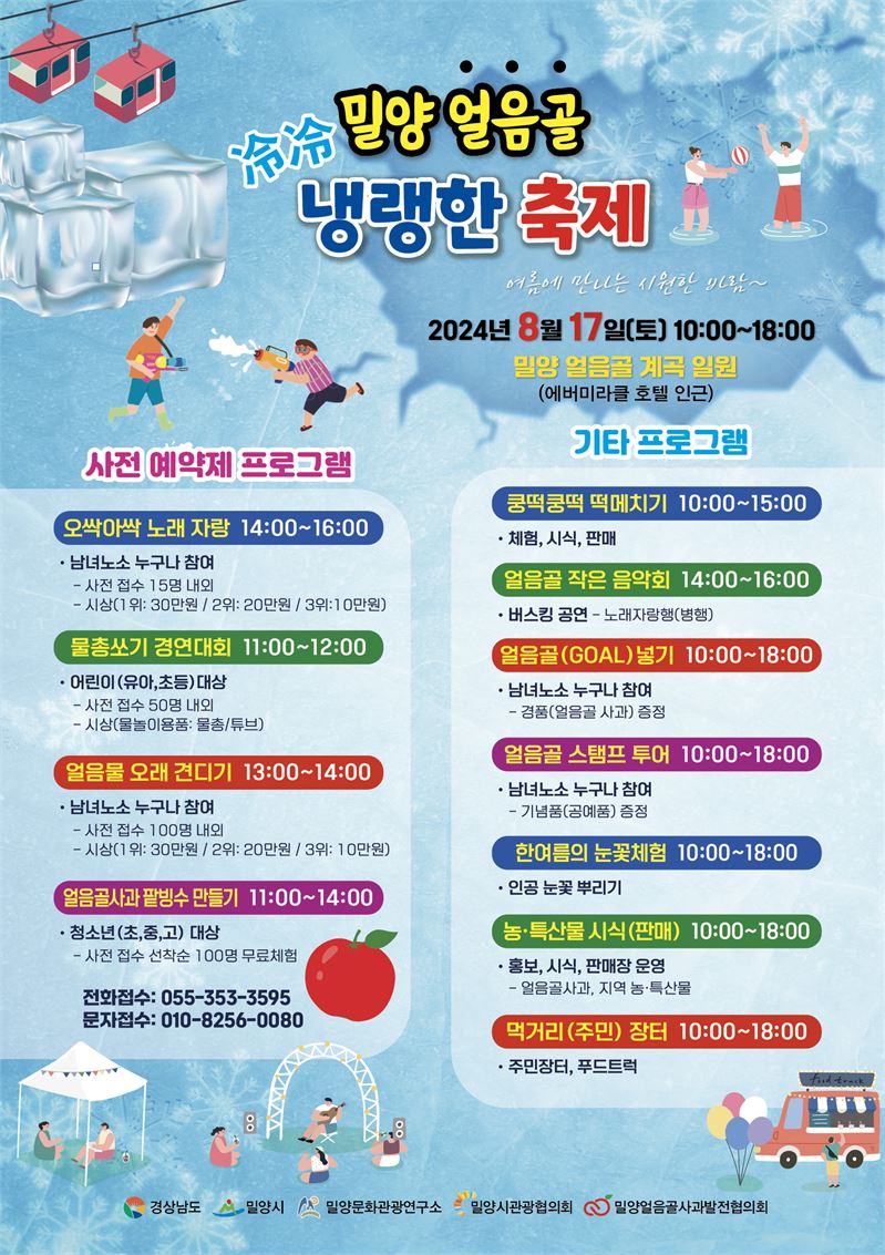 밀양시(밀양시장: 안병구)는 "오는 8월17일(토) 10:00~18:00 밀양을 대표하는 여름 관광지 얼음골 계곡일원에서 다양한 프로그램으로 축제를 개최한다"고 밝혔다.