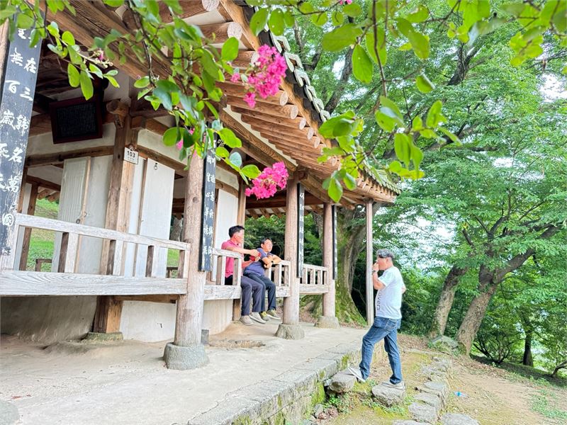 명옥헌에 걸터 앉아 세월을 이야기하는 이형만 고문과 김오현 고문