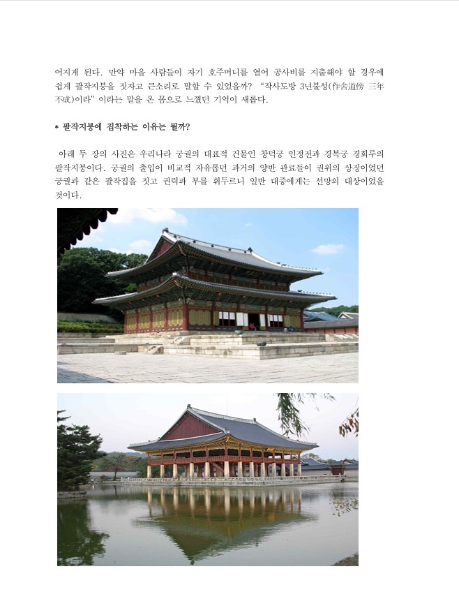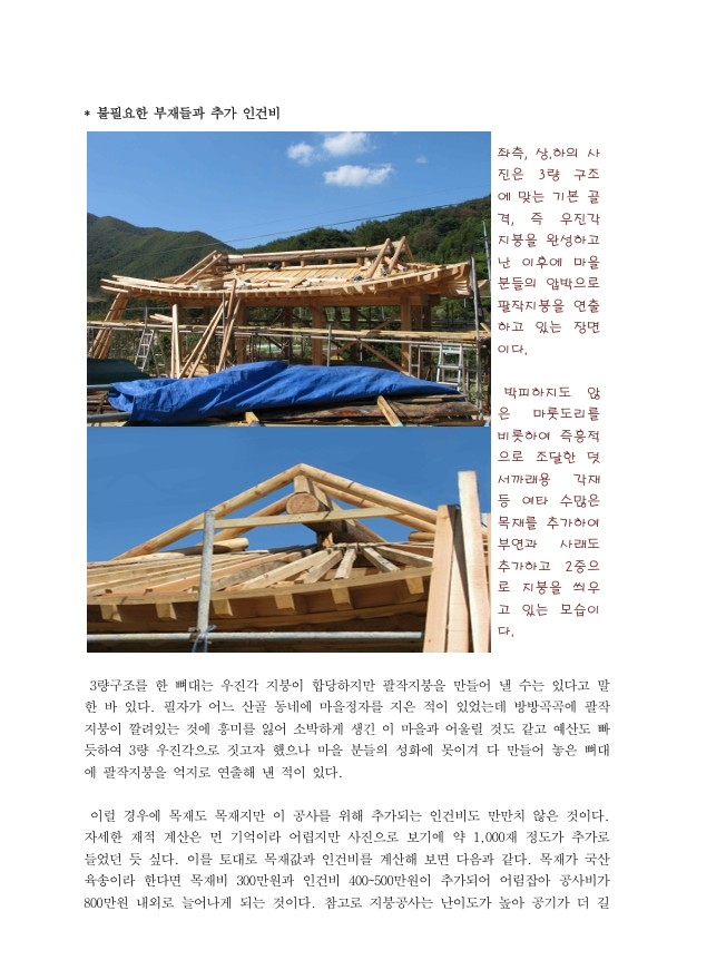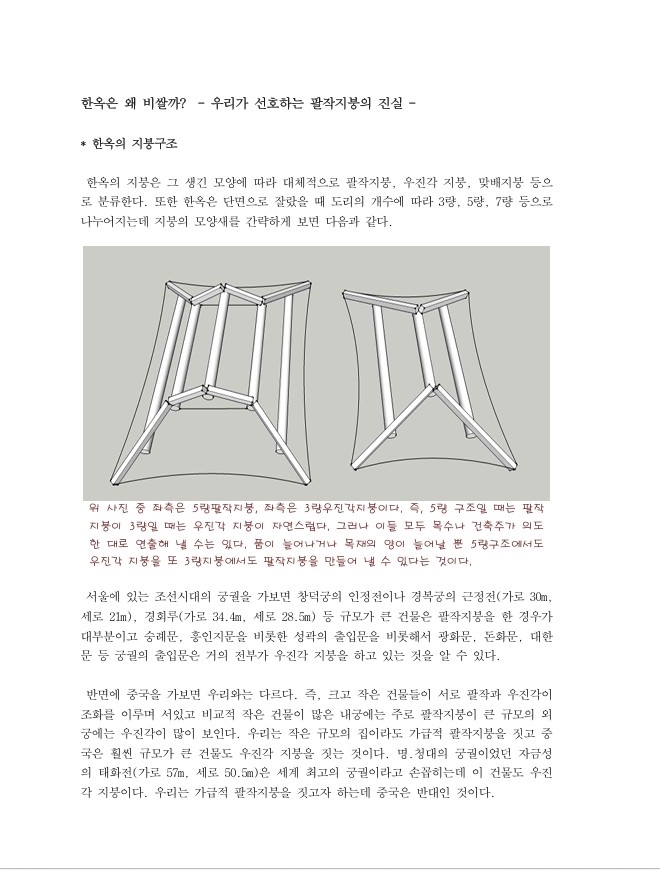 "한옥에 살고 싶은데 너무 비싸다." 이 말은 대부분의 사람들이 하는 말입니다. 그 이유는 무엇일까요? 목재값이 비싸고 인건비 또한 높아지고 있습니다. 그런데 다른 종류의 건축비도 마찬가지입니다. 그렇다면 한옥이 비싸다는 다른 이유가 있지않을까요? 그렇습니다. 한옥이 비싼 이유는 다른 원인이 있습니다. 이를 되짚어보기 위해 몇 차례에 걸쳐 알아볼까 합니다.