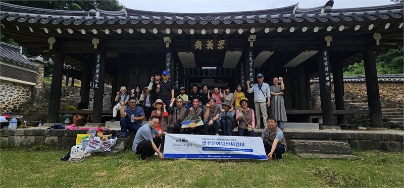 광주문화유산지킴이는 올해도 만주사를 찾았다. 장기간 폭염으로 지친 시민들은 실외에서 자원봉사활동을 한다는 생각 자체만으로도 힘들었을 것이다, 하지만 만주사는 우리가 지켜야 한다는 마음으로 참여했다. 다행히 폭염의 날씨는 오늘은 피해 갔다, 오전동안 흐린 날씨로 지킴이활동하기에 안성맞춤이었고 활동이 끝나자 시원한 단비가 쏟아졌다.
