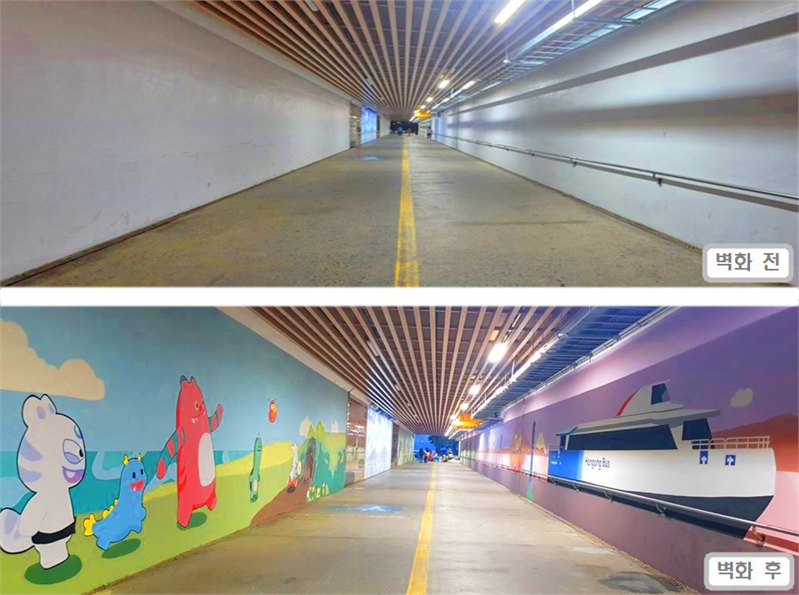 이전까지 어둡고 협소해, 옥수역 밑 굴다리의 음침한 분위기를 자아내던 <이촌한강공원 옥수나들목>은 해치와 소울프렌즈 캐릭터, 한강버스 이미지를 활용, ‘선착장으로 향하는 밝고 안전한 길’로 재탄생했다. 더불어 진입로 벽면·벤치·화단 등 출구 전면도 싱그러운 공간으로 바뀌었다.