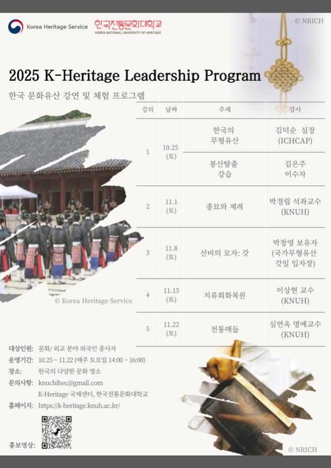 국가유산청(청장 허민)은 (사)한국국가유산지킴이연합회(회장 최호운)와 함께 10월 24일부터 25일까지 소노벨 단양(충북 단양군)에서 「2025 국가유산지킴이 전국대회」를 개최한다.