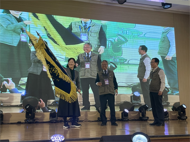 한편 이 대회장에서는 내년도 대회 개최지를 대전으로 확정하여 발표하고 한국국가유산지킴이연합회 최호운회장이 대회기를 한소민 국가유산지킴이 대전.세종거점센터장에게 전달하는 의식도 거행되었다.