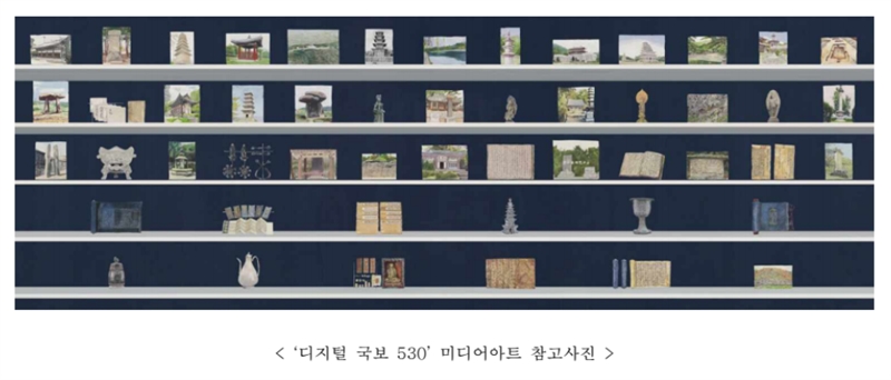 ‘디지털 국보 530’은 한국계 콜롬비아 작가 갈라 포라스-김과의 협업으로 탄생했다. 작가의 원작 ‘국보 530점’은 남북한의 국보 530점을 색연필로 세밀하게 그려낸 연작으로, 미디어월 속 하나의 장대한 그림으로 구현해 냈다.