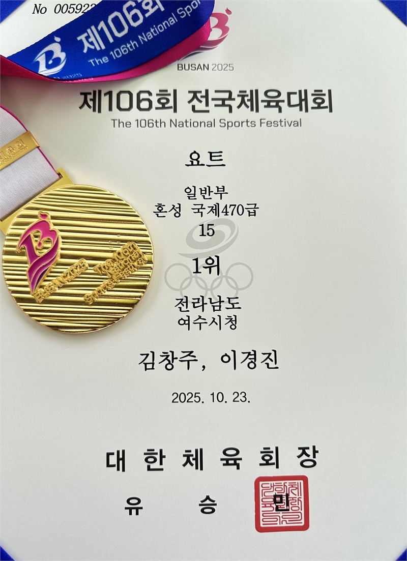 진홍철 여수시청 요트팀 감독은 “이경진 선수는 강한 집중력과 끈기, 그리고 파트너와의 완벽한 호흡으로 최상의 경기력을 보여줬다”며 “보령에서 다져온 해양 감각과 근성은 분명 세계무대에서도 큰 강점이 될 것”이라고 평가했다.