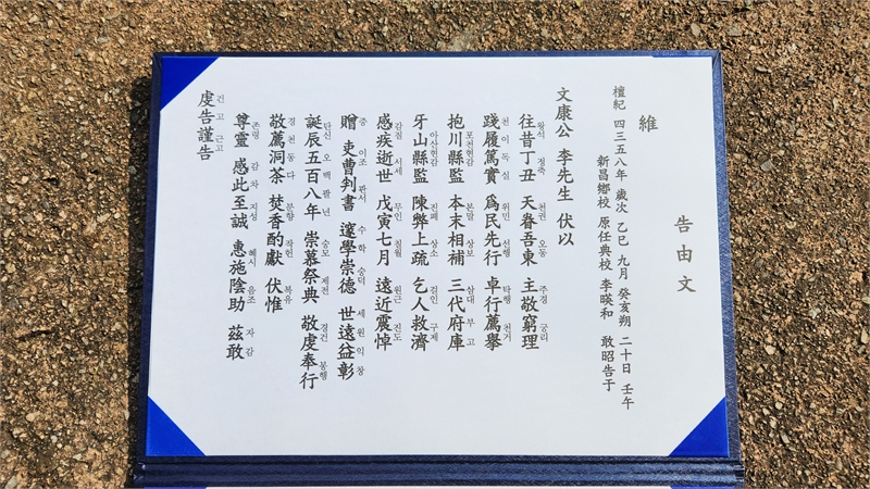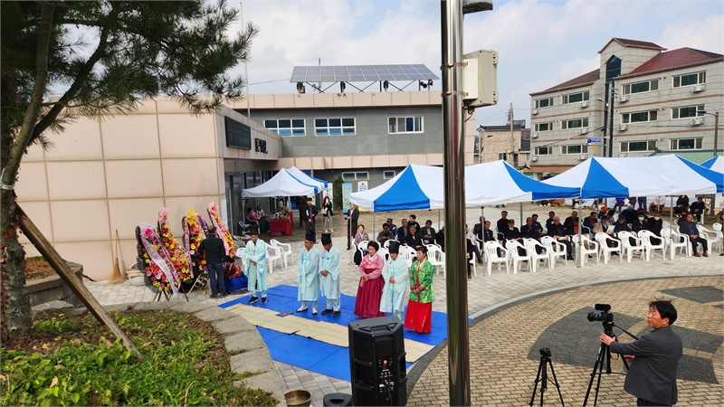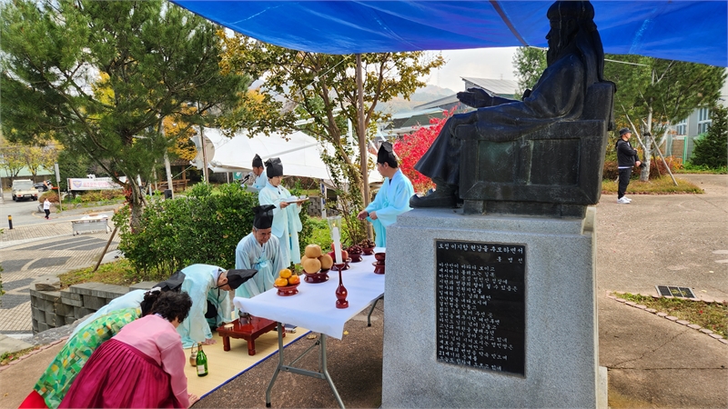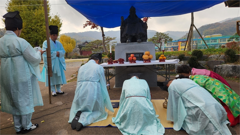 *동상 앞에서 지역 유림들이 고유재를 봉행하고 있다.