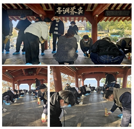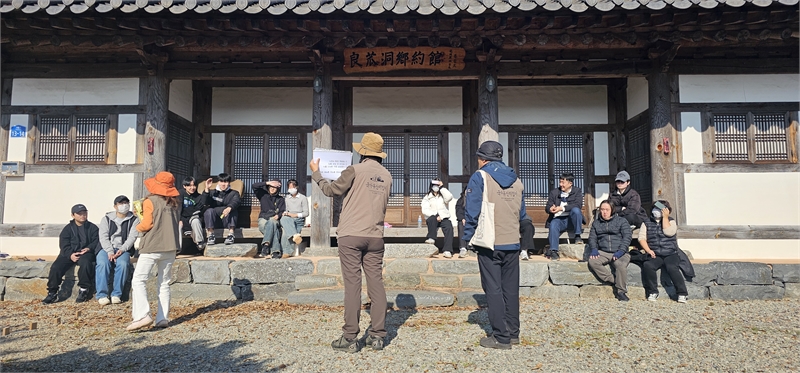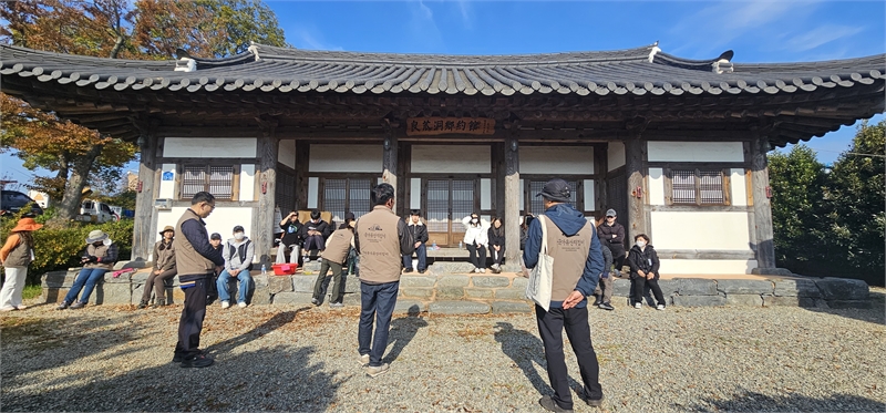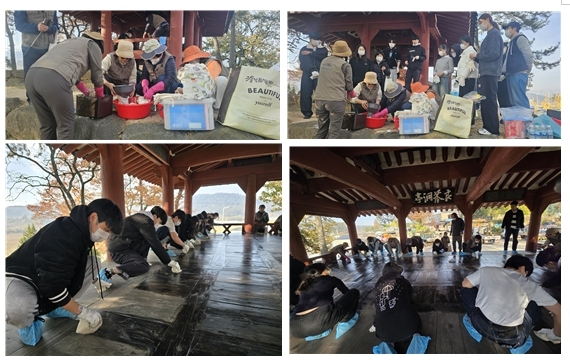 ◆문화유산 지킴이들과 시민 자원봉사자들은 전통 방식의 짚솔 청소와 마루 콩댐 작업을 함께하며 옛 공동체 정자의 가치를 직접 체험했다.
