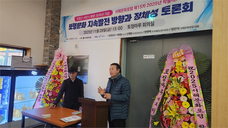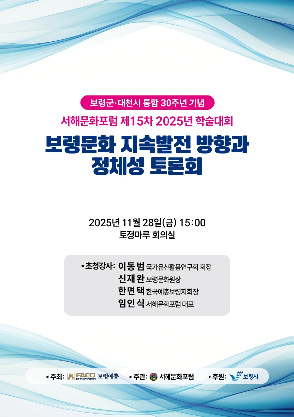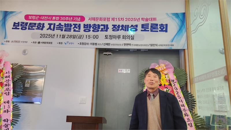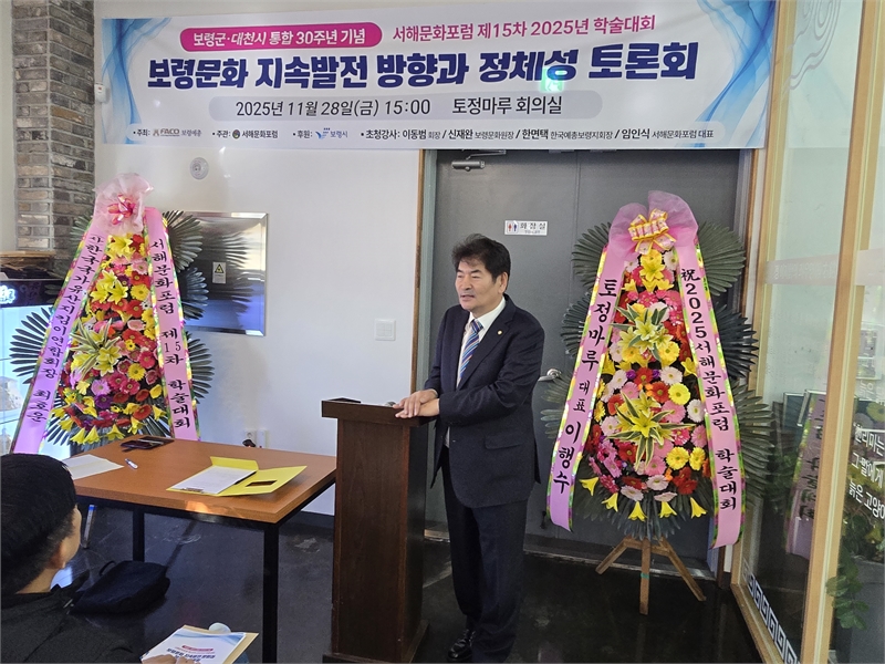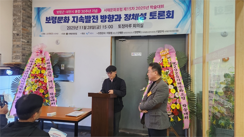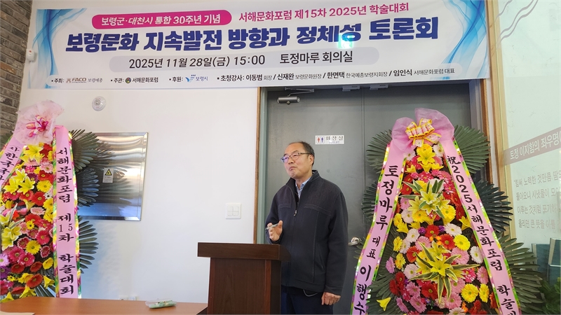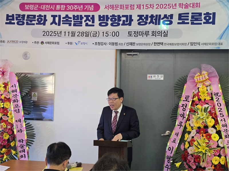 보령군·대천시 통합 30주년을 맞아 지역문화의 새로운 좌표를 제시하는 ‘2025 서해문화포럼 제15차 학술대회’가 28일 토정마루 회의실에서 성황리에 개최됐다. 보령예총(회장 한면택)이 주최하고 서해문화포럼(대표 임인식)이 주관, 보령시(시장 김동일)가 후원한 이번 행사에는 문화·학계·시민사회 리더와 시민 100여 명이 참석해 보령문화의 미래에 뜨거운 관심을 드러냈다.