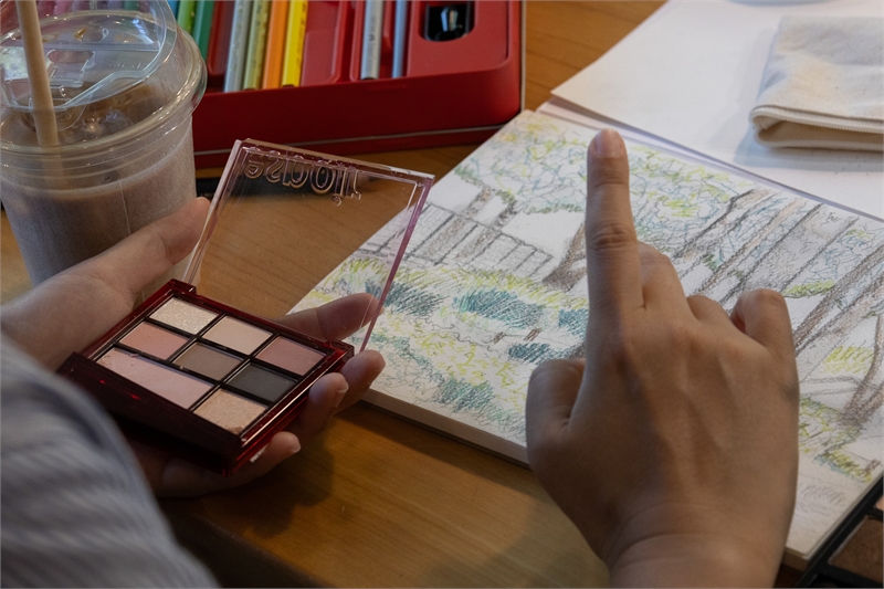 더불어 현장에서도 직접 폐화장품을 재료로 그림을 그려볼 수 있다. 립스틱, 쉐도우 등 다양한 색채의 폐기용 화장품으로 정원의 모습을 그려볼 수 있는 ‘드로잉 이벤트’가 마련되어 있다.