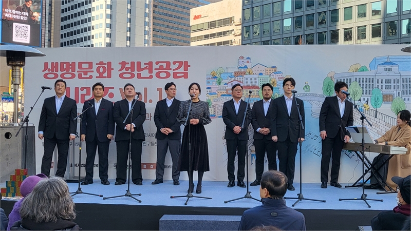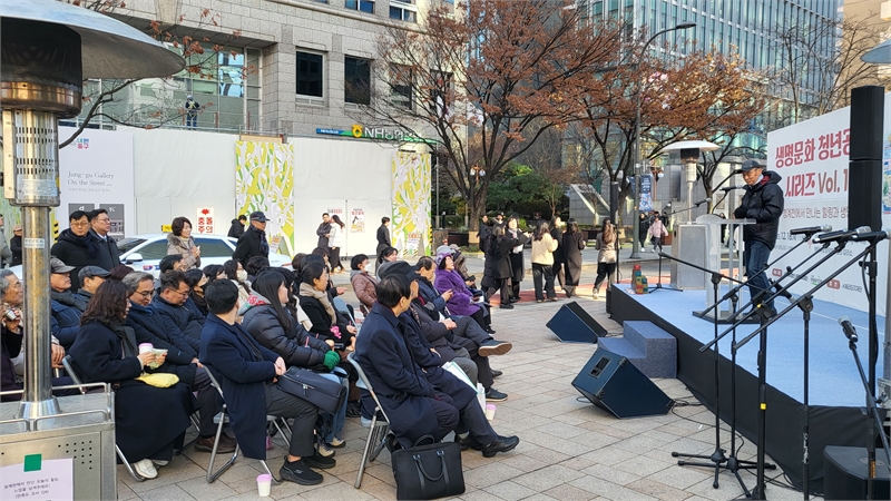 생명문화 시민공감 시리즈 Vol.1.(볼륨 원) - 청계천 광통교에서 만나는 힐링과 생명 행사가 오늘(2025년 12월 18일(목) 11:50) 청계천 광통교에서 있었다.