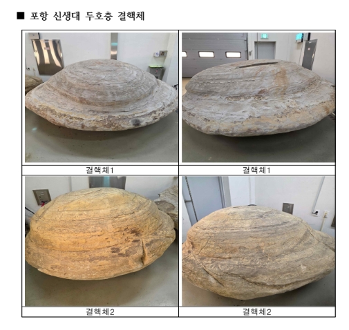 국가유산청(청장 허민)은 「포항 신생대 두호층 고래화석」과 「포항 신생대 두호층 결핵체」를 국가지정유산 천연기념물로 각각 지정하였다.