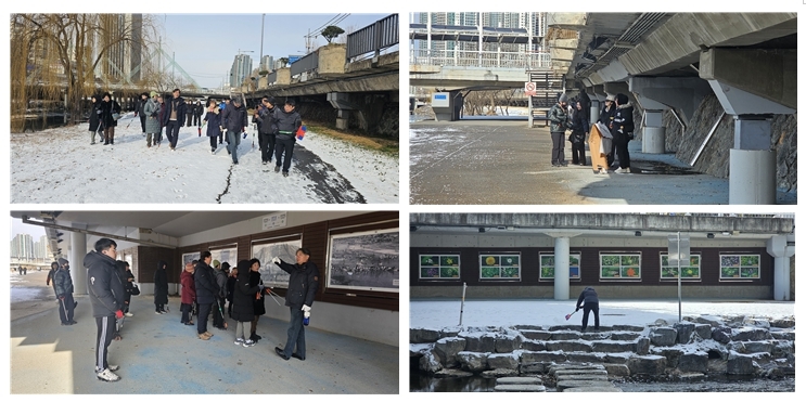 ◆ 플로킹 활동은 광주천의 첫 번째 다리인 광주대교에서 출발해 광주천변 산책길을 따라 이어졌다. 참가자들은 천변 벽면에 설치된 광주천의 옛 모습 사진을 하나하나 살펴보며, 과거와 현재가 공존하는 역사의 현장을 되새겼다. 동시에 버려진 쓰레기를 주우며 환경정화활동과 문화유산 보존의 의미를 함께 실천했다.