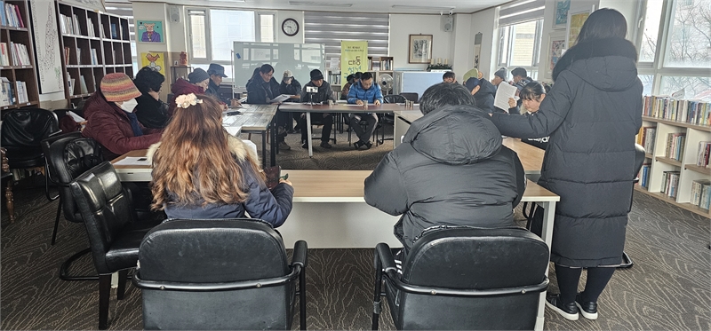 ◆ 참가자들은 약 1시간 30분 동안 작은도서관 무돌에서 광주공원과 광주천의 역사이야기를 다룬 안내자료를 함께 살펴보며, 각자 한 챕터씩 돌아가며 읽는 시간을 가졌다. 단순한 설명을 듣는 방식이 아닌, 모두가 참여해 이야기를 나누며 역사를 알아가는 방식으로 진행돼 현장의 몰입도를 높였다. 차가운 날씨 속에서도 따뜻한 햇볕이 스며들며 눈이 녹고 기온이 점차 오르자, 야외 활동이 가능해졌다.