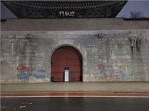 경복궁 담장에 스프레이로 낙서해 원형훼손