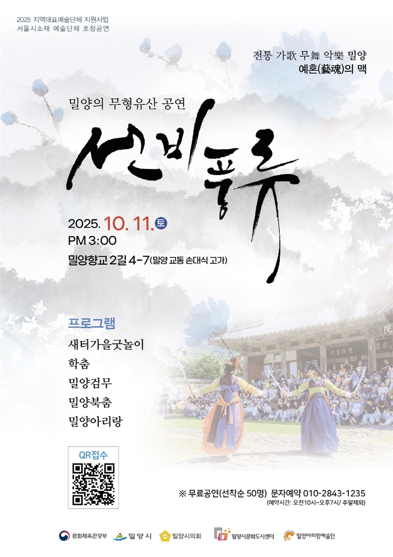 밀양의 무형유산 공연 "선비풍류" - 2025. 10.11. 오후3시, 밀양 교동 손대식 고가