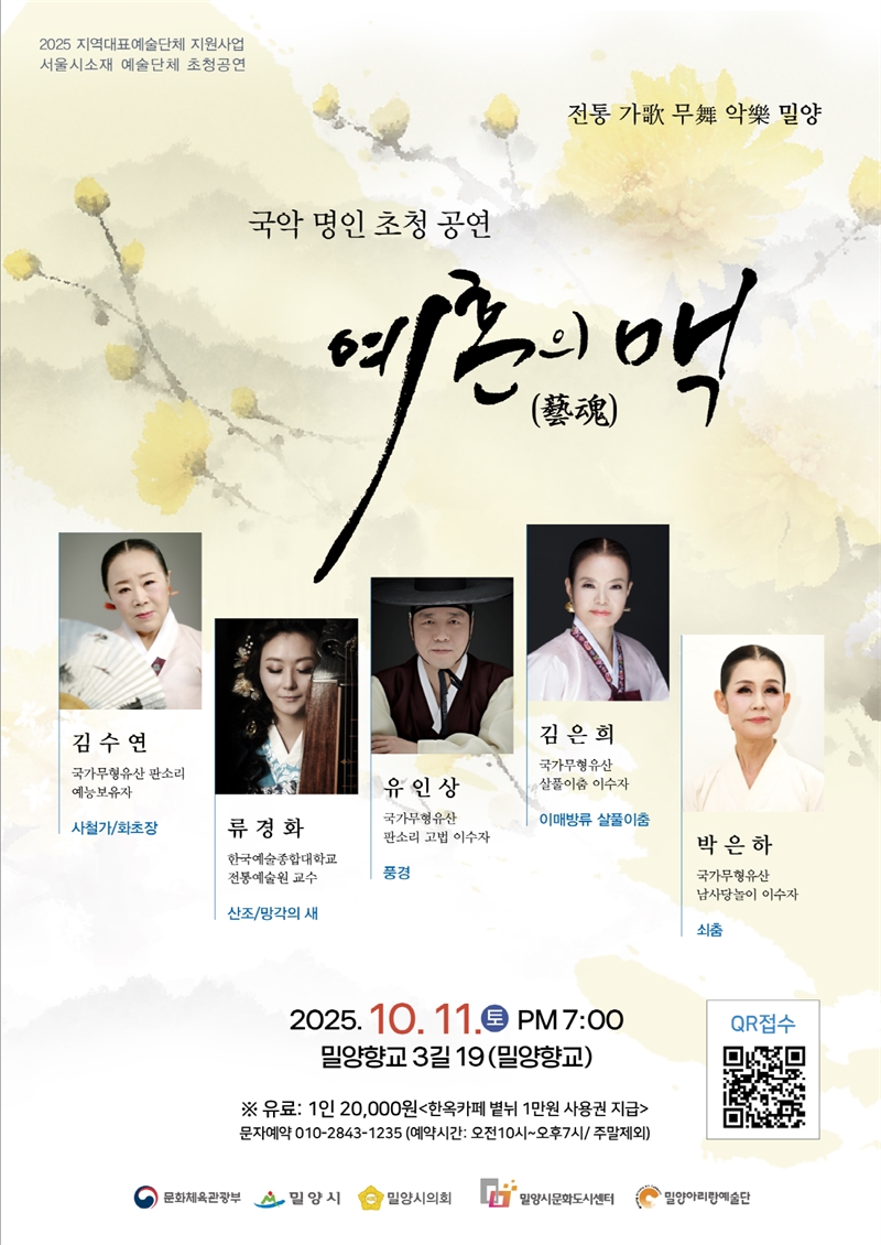 국악 명인 초청 공연 '예혼의 맥'-2025.10.11. 오후7시, 밀양향교