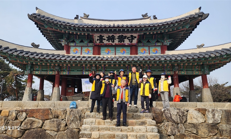 남한산성국가유산지킴이가 지난 3월 12일 월례회의와 함께 수어장대 정화활동을 실시했다.