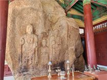 “아, 웃는 상이네요.”방글방글 까지는 아녀도 보면 볼수록 바위에 새겨진 부처님의 얼굴은 미소 짓는 모습이시네요. 지난 4월 1일 태안지역의 답사에 동행한 분들이 국보 마애불을 보며 말한다. 충남 태안반도에 소재한 백화산(白華山) 정상 바로 아래 위치한 국보 문화재 태안 동문리 마애삼존불입상의 인상에 대한 소감이다.마애