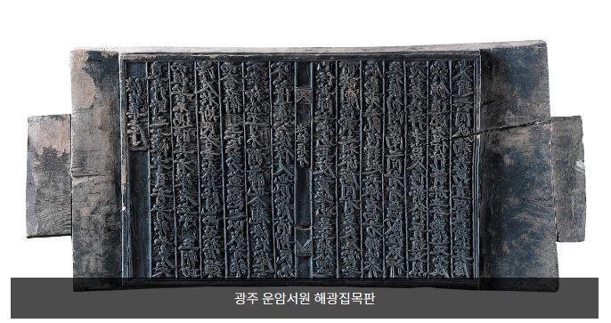 해광집 목판은 조선시대 중기의 문인학자이며 임진왜란기에 의병활동을 한 해광(海狂) 송제민(宋濟民)(1549~1602)의 문집을 간행하기 위해 제작한 목판이다. 조선 후기(1783년(정조 7)) 간행(초간본)했다가 근대(1933년)에 중간하였고, 현재의 목판은 초간본(46매)과 중간본(8매)을 합해 전체 54매로 완질이 보존되어 있다.