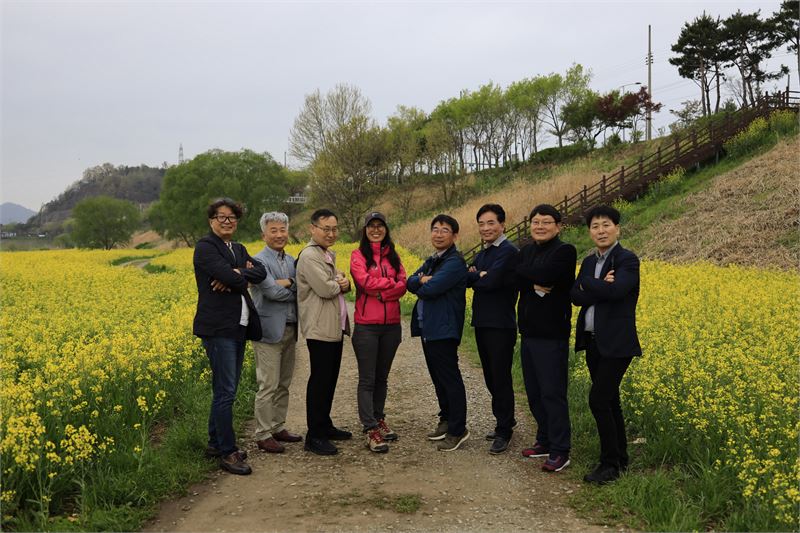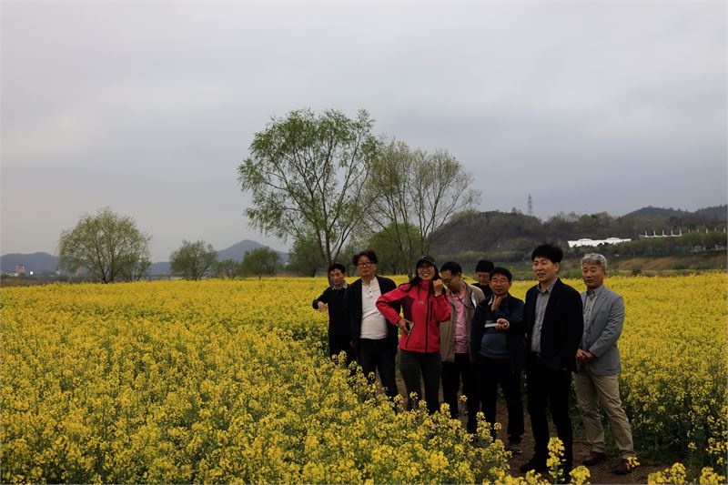 나주 영산포 영산강 푸른물결과 강변 유채꽃에서 단체사진