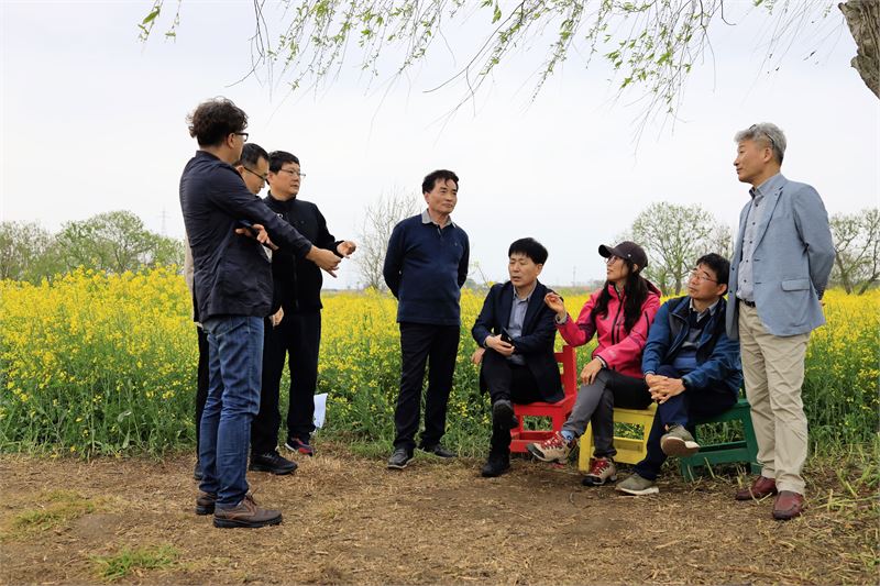 나주 영산포 영산강 강변 동섬의 유채밭에서 담소(사진촬영 오현)