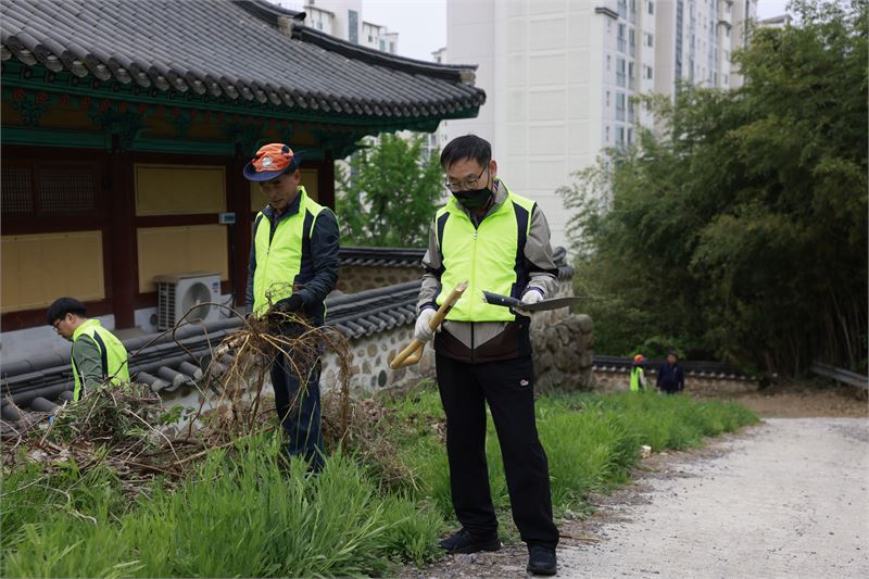 삶의 행복은 사소한 일에 대한 감사로부터 시작된다고 하네요. 따사로운 햇살 아래 연초록빛 움트는 4월 23일(일)에 한국문화재지킴이단체연합회에서 주관하는 "내 고장 문화재 가꾸는 날" 활동을 서구 벽진서원에서 봄날의 햇살을 맞으면서 진행하였다. 회사가 바빠서 회원님들께서 매월 토요일도 없이 주ㆍ야로 일해야 하는 관계로 많은 회원이 참석하지 못해 아쉬움은 남지만, 그래도 20여명의 회원님과 가족들이 참석하여 진행하였다.