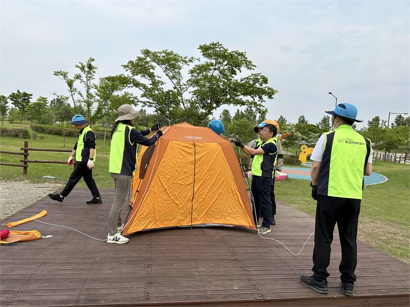 기아문화재지킴이 회원들 텐트설치 봉사활동 중...