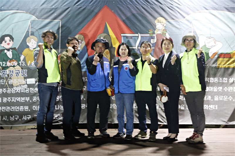 이번 캠핑은 지난 3월 광주시 기업봉사단협의체 실무자 회의에서 ESG기반 협력사업으로 제안된 11가지 사업 중에 광주지역 공공기관과 기업, 중간 지원조직, 시민사회단체, 자원 봉사단체 등이 함께 참여할 수 있는 사업으로 광주환경공단이 제안했다. 행사에는 기업봉사단협의체 회원사 및 협력 기관 30여 개 기관이 참여하여 음식 조리, 체육대회 진행, 떡메치기 체험, MBTI, 비엔날레관람 지원, 러시아어 통역, 텐트 설치, 문화예술공연 등을 위한 자원봉사자 100여 명이 참여해 원활한 행사 진행을 도왔다.
