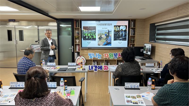 한병기 부회장 공모선정 단체들에게 기아문화재지킴이 소개 (사진제공 서구자원봉사센터)