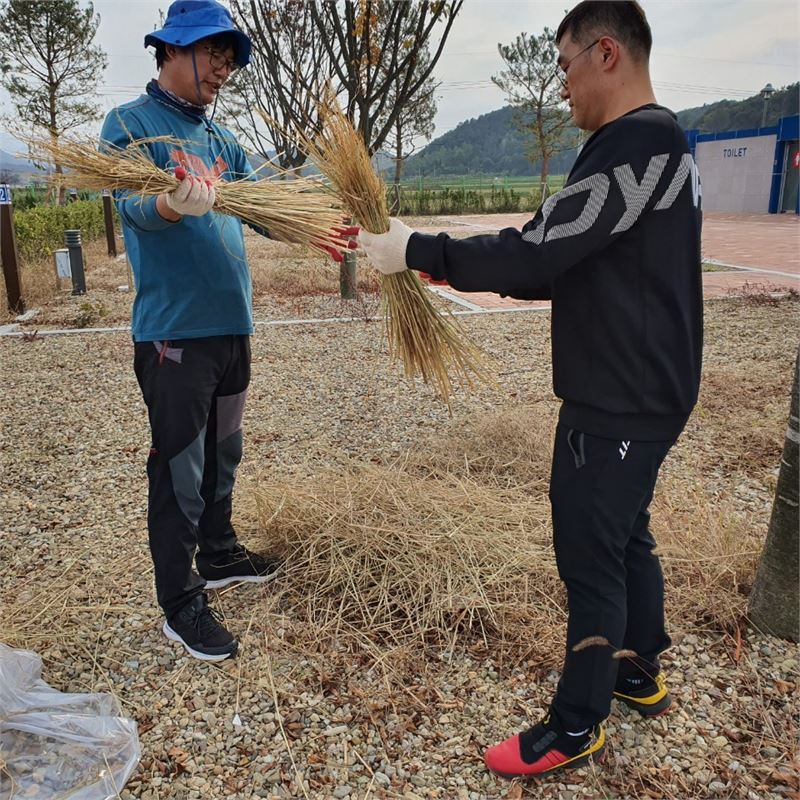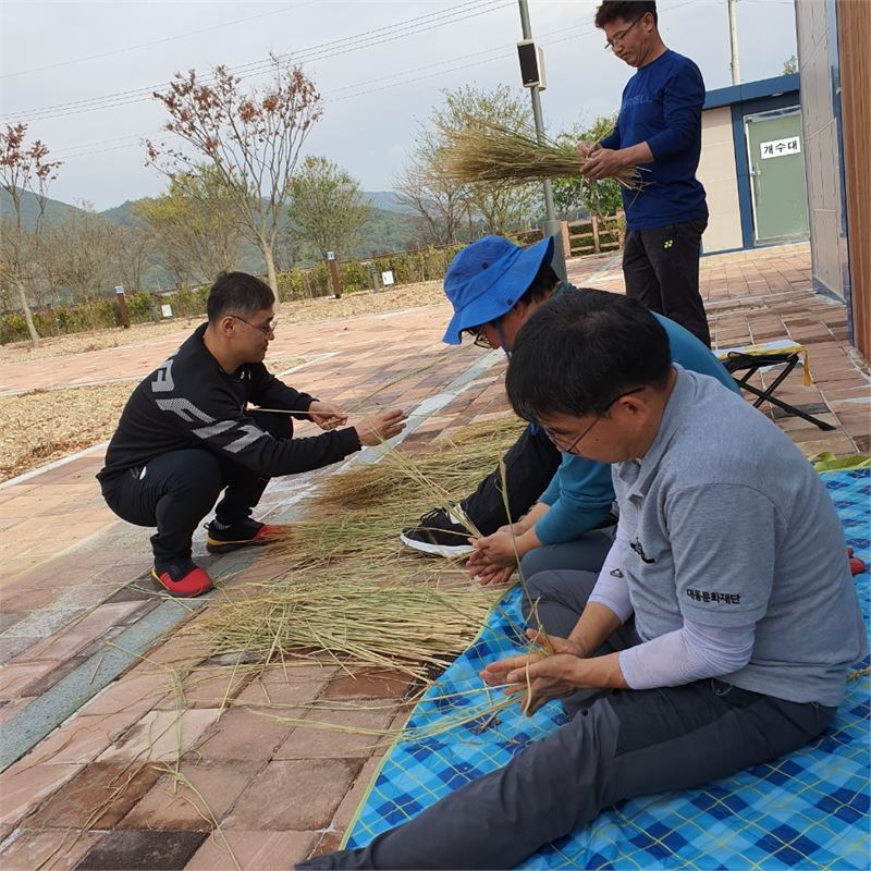 기아문화재지킴이들 볏짚으로 새끼꼬기 작업