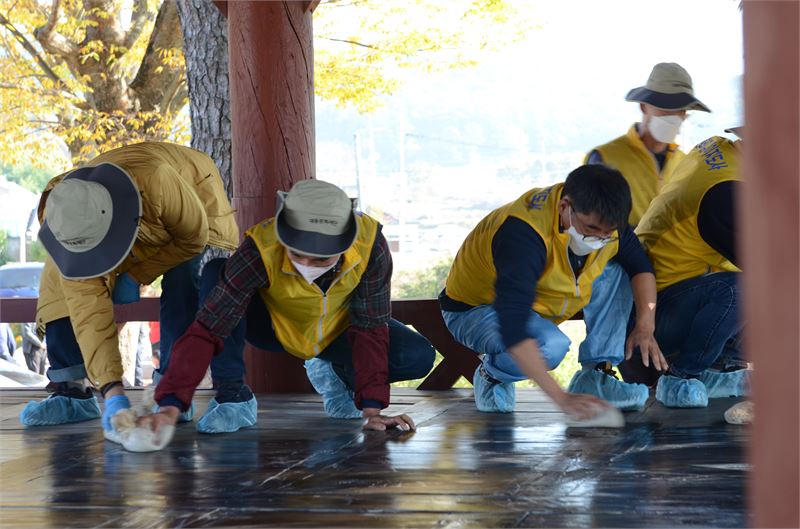 콩댐한 표면을 마른걸레로 문지르기 작업(사진제공 고경님)