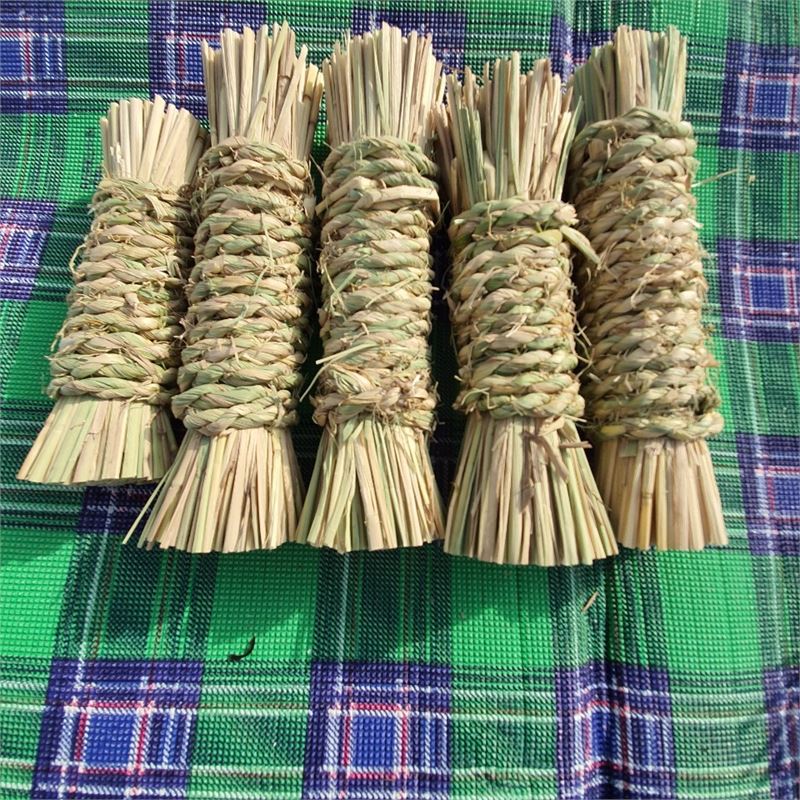 짚솔 재료인 볏짚에서 불필요한 부분 제거