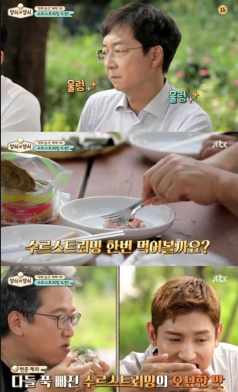 스웨덴의 발효음식 수르스트뢰밍 먹어 보는 JTBC방송 출연자들(사진제공 네이버 검색)