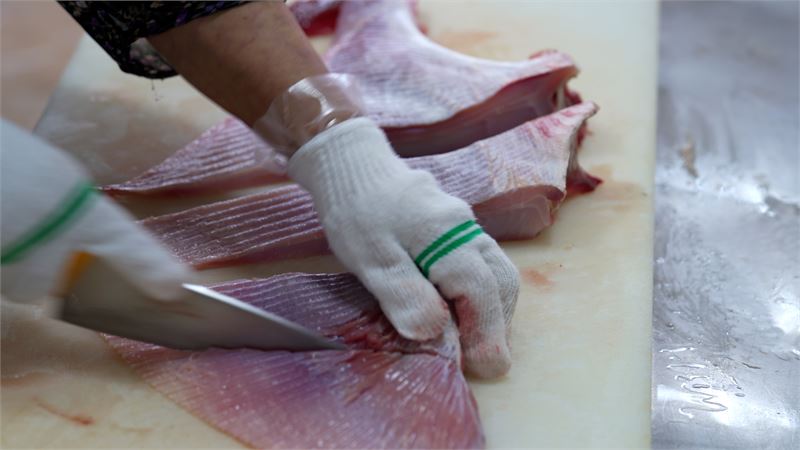 홍어전문가의 홍어 날개 써는 작업중(사진촬영 정헌)