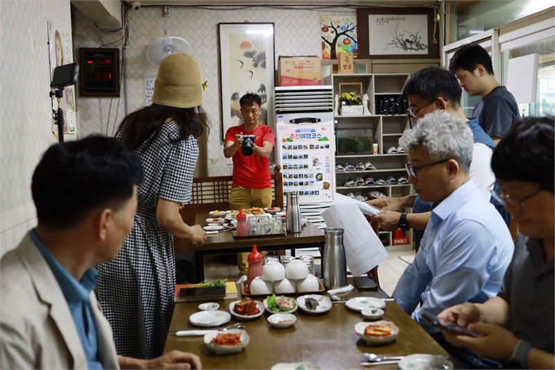 "홍어 거시기"란 말의 유래에 대해 설명하는 박미경 회원과 촬영장면