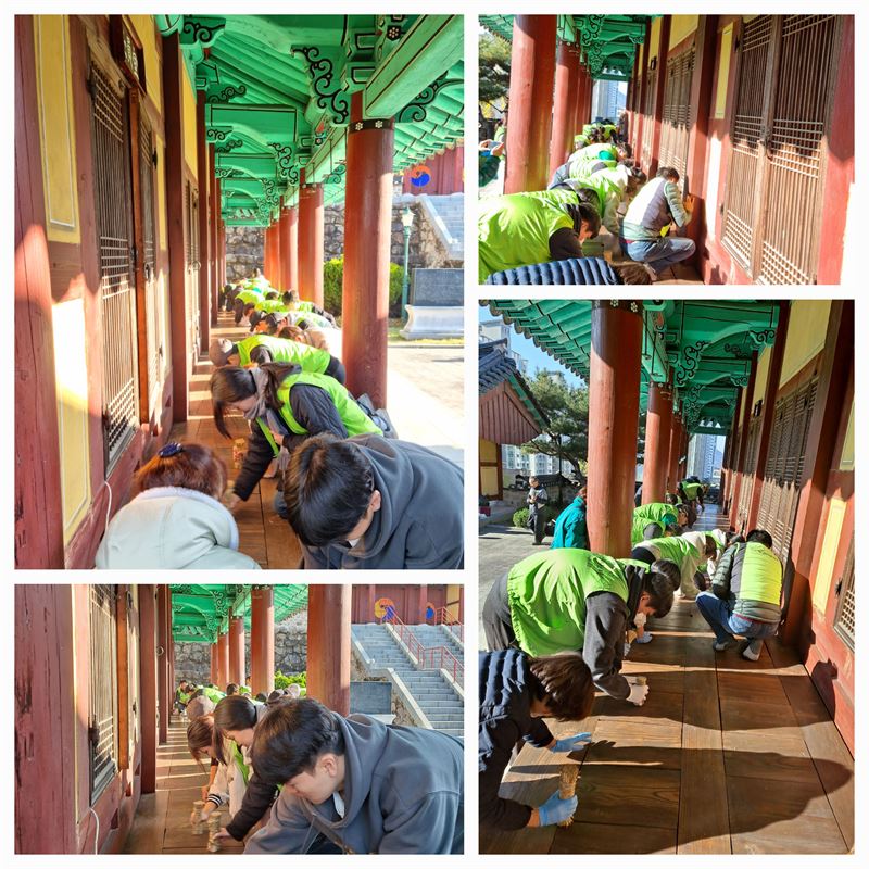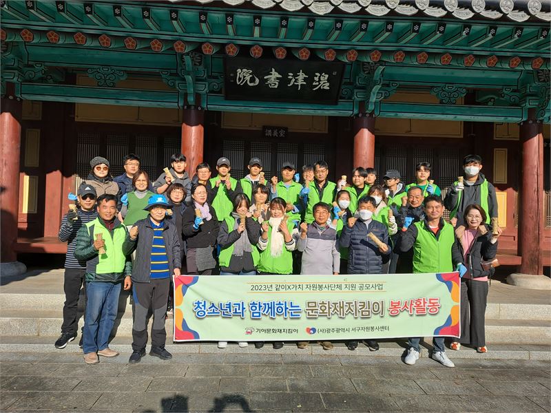 2023년 11월 19일(일) 기아문화재지킴이 활동은 광주광역시 서구 벽진서원 숭본당 강당과 마루 보존을 위한 "콩댐 체험"으로 진행되었다. 이날 문화재지킴이활동은 광주광역시 서구 자원봉사센터의 공모지원사업(2023년 "같이 x 가치" 청소년과 함께하는 문화재지킴이 봉사활동) 중에서도 참가자들 호응이 너무 좋아 다시한번 더 진행하게 되었다. 이번 문화재지킴이활동에는 기아문화재지킴이 회원과 가족, 음성박씨 정승공파 종중 관계자 그리고 1365 봉사활동을 신청한 청소년 등 약 40여 명이 참여했다.