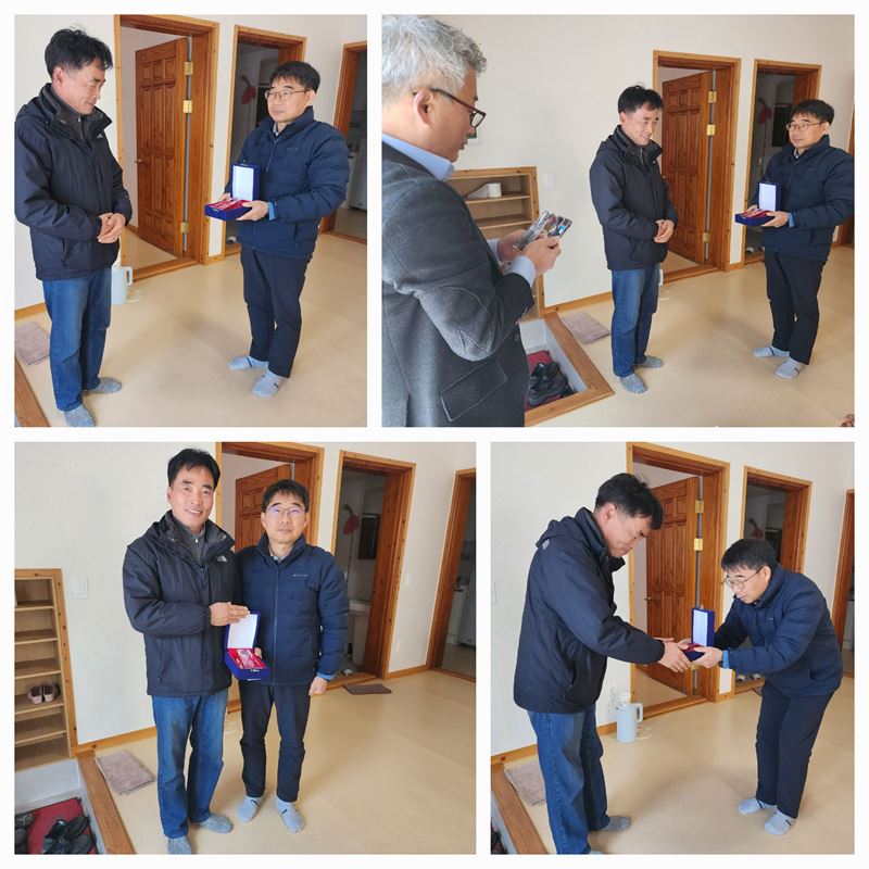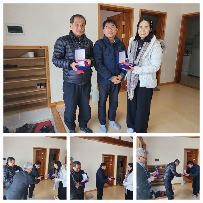 올해 정년을 맞이하신 김진기, 박태성, 이형만 등 3명의 선배님들께 그동안 노고에 대한 감사의 뜻으로 정년 기념패 전달식 장면