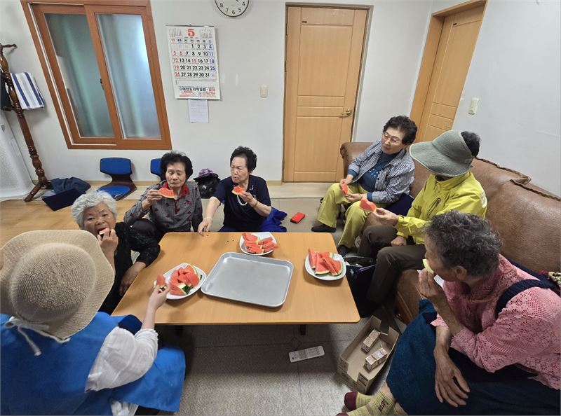 다음 주 탐방객 맞이를 앞두고 이웃 부여의 그림책 마을을 찾아 그 마을 어르신이 들려주는 마을 이야기에 눈물 짓기도 하며 마음을 촉촉히 적시고 돌아와 마을 해설사 교육 수료식을 갖고 주민분들이 준비한 수박을 나누며 프로그램 기획진들과 마을 분들이 하나가 된다.
