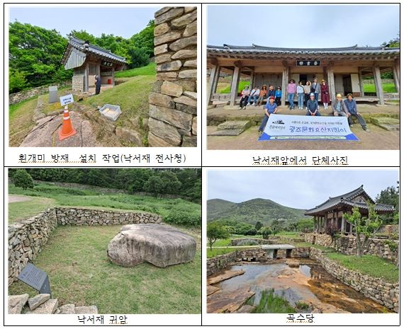 문화유산 지킴이가 왔다고 마침 낙서재 흰개미 방재사업을 하고 있었다. 목조문화유산 주변에 방재통을 묻어 흰개미가 서식하는 지 알아본다고 한다.
