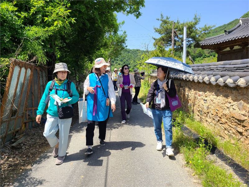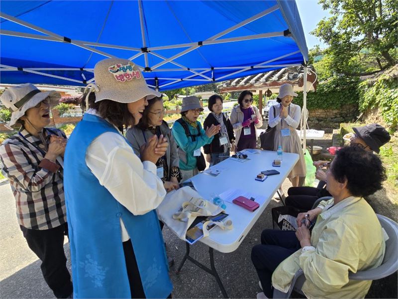 마을 어귀 우물 옆 공터에선 마을 주민으로부터 마을의 자랑거리에 대한 이야기를 듣고