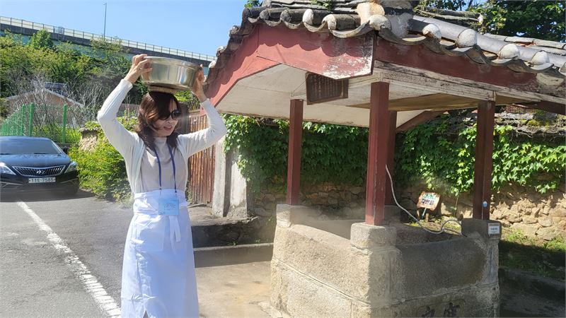 마을 중심의 우물에선 우물물을 길어 머리에 이고 나르던 옛 풍습을 체험해보고