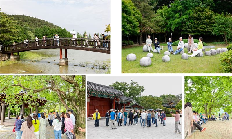 푸르름이 넘치는 5월 광한루원을 거닐어 보니 신선이 따로 없다는 생각이 절로 든다. 가족 단위로 탐방을 와 보니 조용하기도 하고 가는 곳마다 해설사님들의 해설도 머릿속에 쏙쏙 들어온다고 했다. 자녀와 같이 탐방에 나선 기아국가유산지킴이 손경모 총무는 딸아이가 요즘 사춘기를 격고 있었는데 같이 거닐며 이야기도 많이하고 고민상담까지 하고 보니 서로가 관심이 멀리 있다는 생각이 들었다고 한다. 돌아가면 오늘처럼 대화도 많이 하자고 약속도 했다고 말했다. 또 아들과 같이 온 엄마는 가끔 기아국가유산지킴이 활동에 아들과 동행을 했는데 올봄에 아들이 취업에 성공해 더 이상은 함께 참여하기가 어려울것 같아 아쉽다는 생각이 앞선다고 했다.