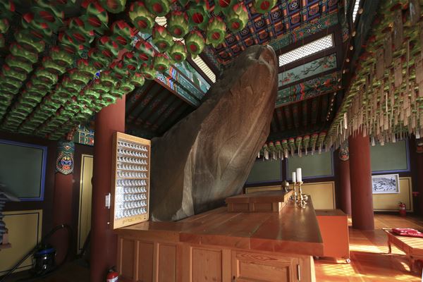 현재 미륵전 안에는 5m 정도 높이의 큰 바위가 있는데, 이 바위를 용왕의 아들이 변하여 된 미륵바위라고 한다. 언제부터인가 이곳 미륵바위에 동전을 붙이면 한가지 소원이 이뤄진다는 말이 전해져 지금도 많은 사람이 동전을 붙이곤 한다.