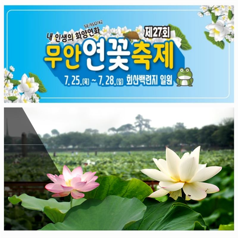 무안연꽃축제는 전라남도의 대표적인 여름축제로서, 올해로 27회를 맞는 2024년 무안 연꽃축제 가 오는 7월25일 막이 오른다. 무더운 여름에 만개하는 연꽃은 한여름 가장 더울때 가장 아름다운 꽃을 핀다. 7월25 일 개막하고 28일까지, 전라남도에 대표적인 여름축제로 "내 인생의 화양연화" 라는 주제로 열리는 이번 축제는 만개한 연꽃을 아름다움을 만끽 할수 있는 다채로운 공연 행사 등으로 전국 관광객을 맞이한다.
