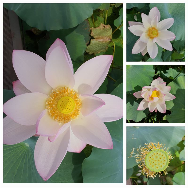 연꽃은 처음에는 끝이 연한 분홍빛을 띠다 점차 꽃이 순백색으로 변하는 백련의 모습